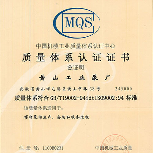 • 1996注冊(cè)創(chuàng)立黃山工業(yè)泵廠